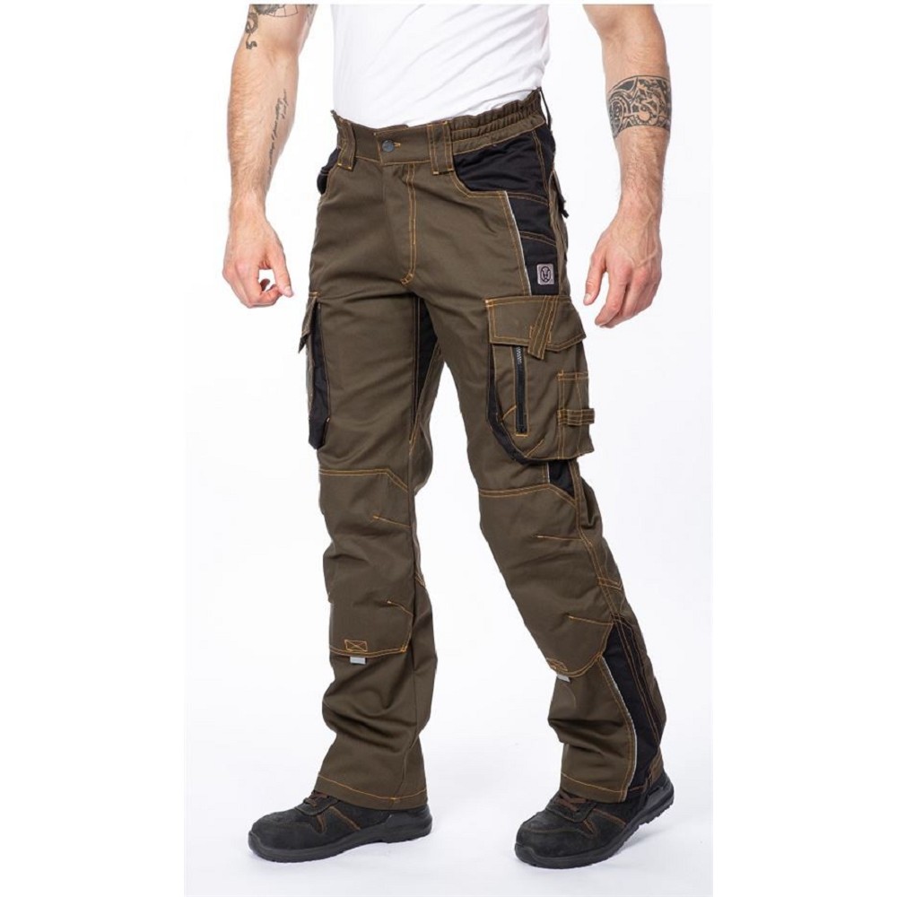 montérkové kalhoty do pasu z kvalitního směsového materiálu, zesílená kolena, kapsy na nákoleníky, kapsy a poutka na nářadí , pásek, reflexní doplňky, materiál: kepr 60% bavlna, 40% polyester 260g/m2, včetně hřebíčenky, barva: černo-šedá