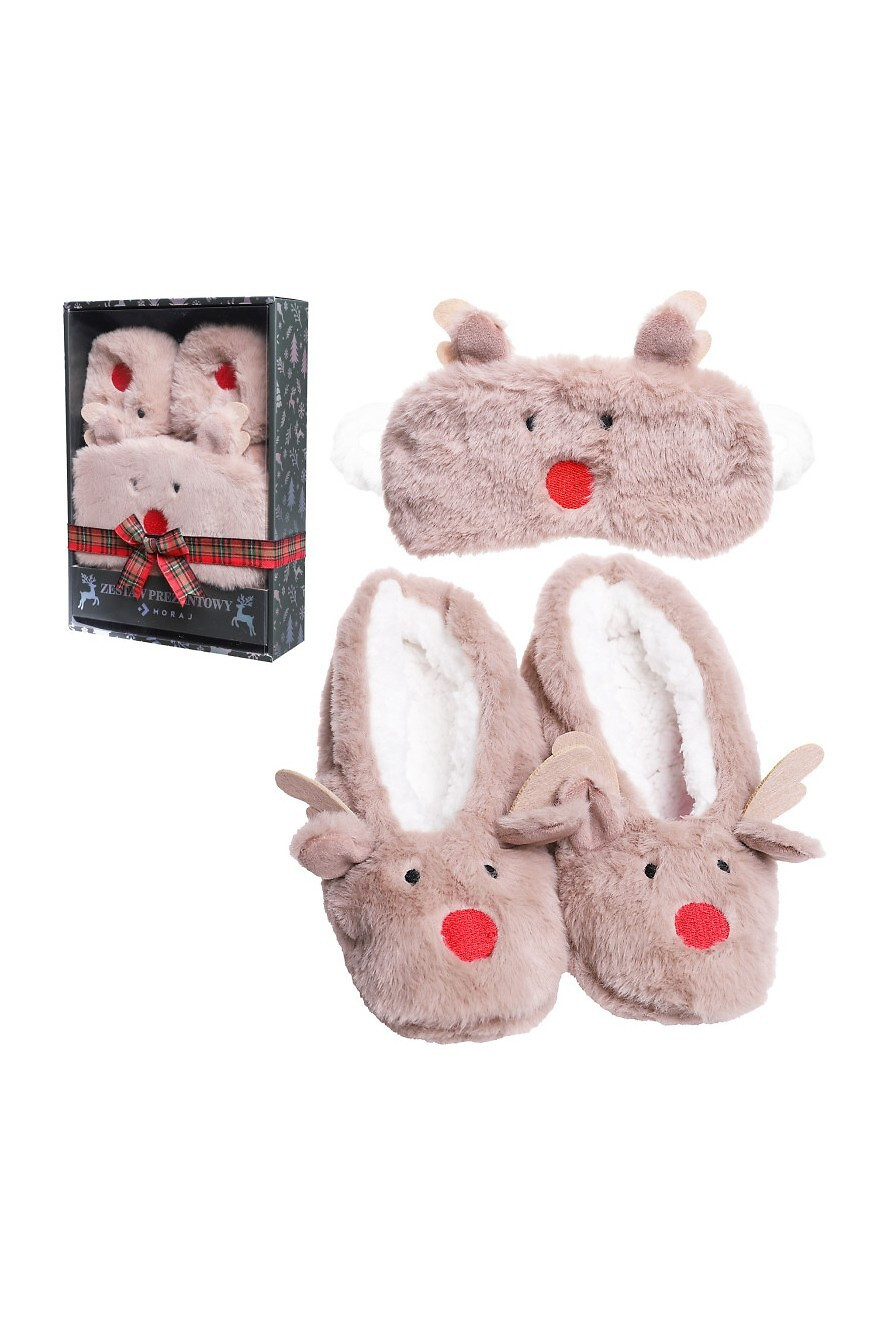 Dámská sada - pantofle a páska přes oči - z měkké a huňaté kožešiny - zdobené obrázkem soba - střih baletních střevíčků - kožešina na vnitřní straně - protiskluzová stélka - zavazování očí - chrání a izoluje oči před světelnými podněty - usnadňuje usínání v nepříznivých podmínkách - ideální na cesty - při spánku netlačí ani neklouže - baleno v ozdobné krabičce, ideální jako dárek Složení: 100% polyester