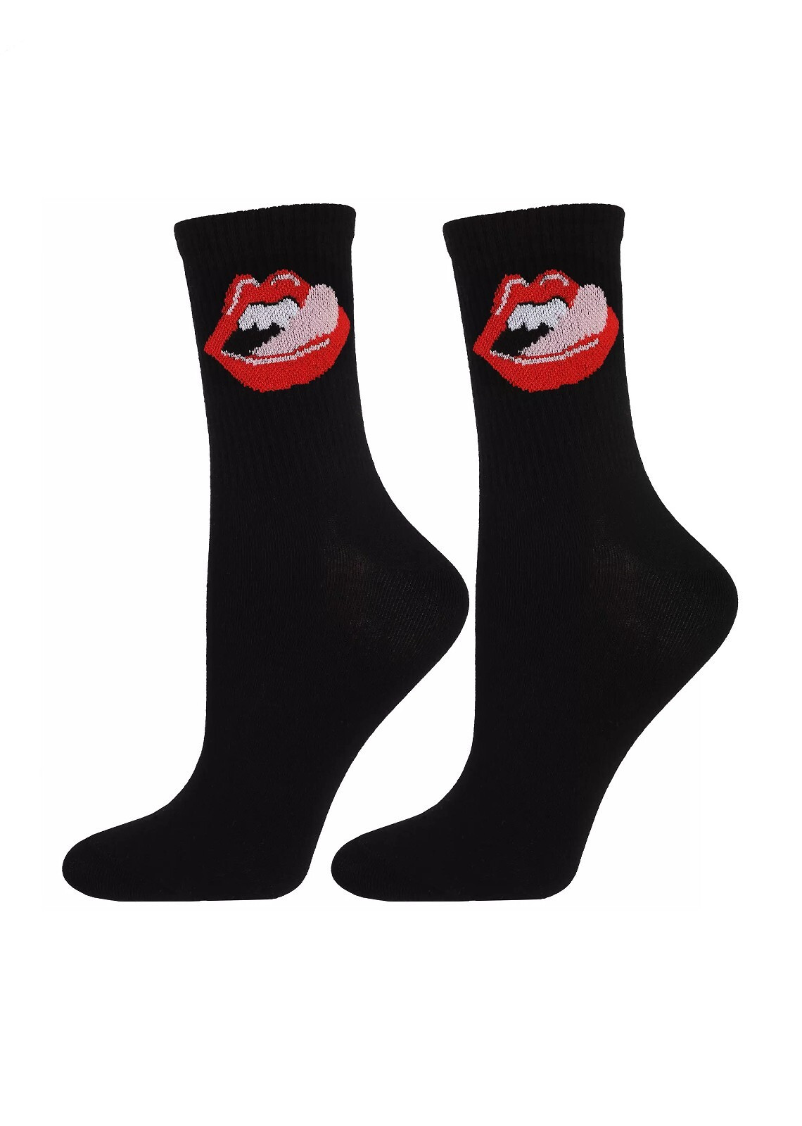 Dámské ponožky - z vysoce kvalitní bavlny - žebrovaný svršek zdobený barevným vzorem úst - ideální pro každodenní styling - dokonale se přizpůsobí vašim nohám - zajišťují vysoký komfort nošení - dostupné barvy: černá se třemi různými vzory úst, náhodně vybrané Složení: 69 % bavlna, 28 % polyamid, 3 % elastan