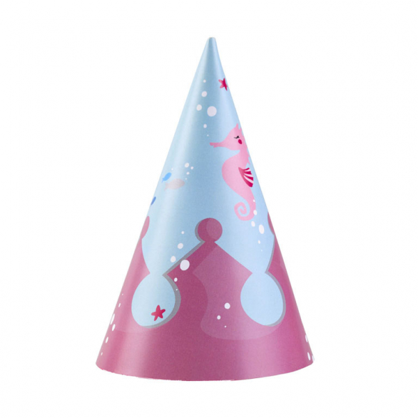 Mořská panna čepičky 8 ks Čepičky mají i gumičky na upevnění kolem brady. Design Mořská panna je pro holčičí párty vděčným motivem. Díky nespočetným kresleným seriálům, v kterých se mořská panna resp. mořská víla objevuje, se tento oblíbený motiv dotýká snad všech generací. Podmořský svět fascinuje svou tajemností a proto výzdobou oslavy s mořskou pannou určitě nic nezkazíte. Dětská párty s mořskou pannou potěší oko jak malé oslavenkyně, tak i jejich kamarádek.