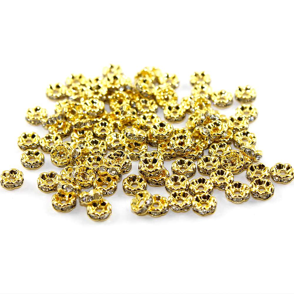 Mosazné šatonové neboli štrasové rondelky o délce 6 mm, šířce 6 mm, hloubce cca 3 mm s velikostí průvleku 1,5 mm. Rondelka ve zlaté barvě s kamínky kvality A, barva kamínků čirá. Okraj rondelky je vroubkovaný. Rondelky prodáváme po jednom kusu. Šatonové neboli štrasové rondelky se řadí mezi kovové korálky a komponenty a používají se jako mezidíl mezi korálky. Hodí se do náramku, řetízku i náušnic. Rondelky jsou vyráběny v různých velikostech, tvarech i barvách. Jejich dohotovení spočívá v trpělivosti a ruční přesnosti. Nejčastěji se navlékají na elastomer, elastickou lycru nebo vlasec. Rondelky jsou drobné kamínky zasazené do bižuterního kovu a mohou mít různé tvary. Díky broušeným třpytivým kamínkům můžete své šperky ozvláštnit. Stačí rondelky zakomponovat do návleků náramků a náhrdelníků nebo náušnic mezi jiné korálky. Velmi elegantně působí například s voskovanými korálky. Použít je ale můžete se všemi druhy korálků.