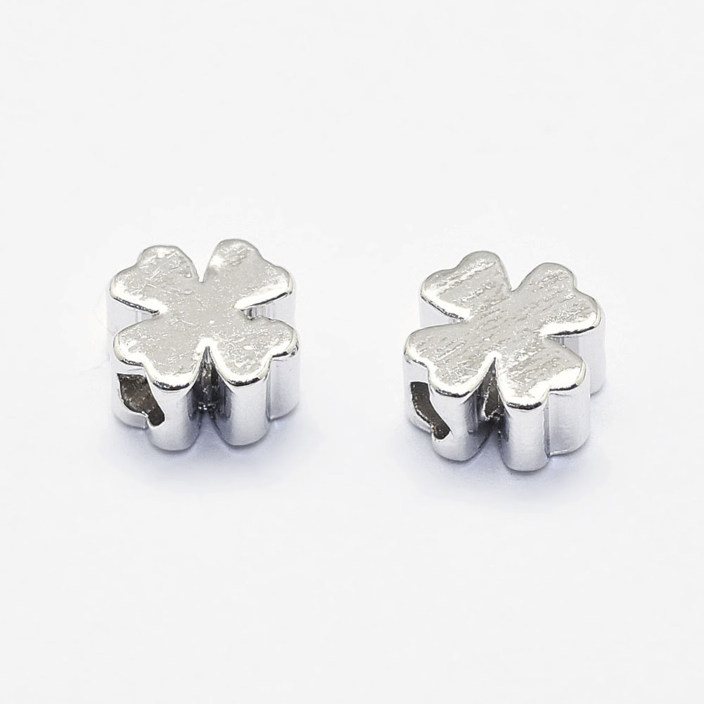Mosazné korálky – Čtyřlístek, pokovené pravou platinou Tyto elegantní mosazné korálky ve tvaru čtyřlístku jsou pokovené pravou platinou, což jim dodává luxusní vzhled a dlouhotrvající lesk. Díky jejich jemnému designu a preciznímu zpracování jsou ideální pro výrobu náramků, náhrdelníků, náušnic nebo jiných šperkařských projektů, kde vynikne jejich symbolický motiv přinášející štěstí. Velikost: Délka: 5 mm Šířka: 5 mm Tloušťka: 2,5 mm Otvor: 1,5 mm Vlastnosti: Symbolický design: Čtyřlístek je symbolem štěstí a prosperity, což dělá z těchto korálků ideální volbu pro osobní šperky nebo dárky. Kvalitní materiál: Mosaz s platinovou povrchovou úpravou zajišťuje dlouhou životnost, odolnost proti zmatnění a elegantní vzhled. Bez obsahu niklu: Hypoalergenní a bezpečné pro citlivou pokožku. Tyto korálky přinášejí do vašich šperků nádech luxusu a jedinečnosti. Snadno se kombinují s dalšími komponenty a jsou perfektní volbou pro kreativní projekty všech stylů – od moderních po klasické. Precizní, elegantní a symbolické. Korálky prodáváme po jednom kusu.