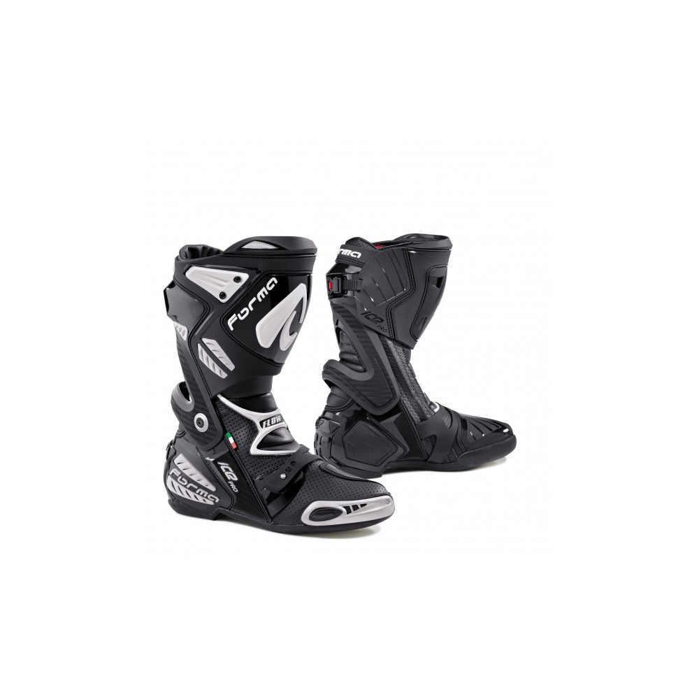 Vyrobeny ze 100% mikrovlákna Pryžová podrážka odolná vůči oleji F.C.S. (více se dozvíte v popisu níže) Kovové slidery na špicích s ventilací Plastové slidery na patách Vyměnitelný horní slider Plastové výztuhy agresivního vzhledu vytvořené vstřikovací technologií Ventilační kapsy Dvojité zapínání na zip a suchý zip překrytý semišovou kůží Rychloupínací přezka v horní části boty Extra měkká polymerová vycpávka, která kopíruje tvar nohy TPU Dual Flex anti-vibrační EVA nylonová mezipodrážka s pružnou přední částí pro lepší citlivost a stabilitu na motocyklu Antibakteriální vyjímatelné vložky s ventilačním systémem APS Boty jsou určeny k jízdě na motocyklu a nejsou určeny k chůzi v zapnutém stavu Prodyšné (FLOW) na rozdíl od ICE PRO F.C.S. (Flex Control System) Speciální, anti-torzní F.C.S. (Flex Control System) zaručující maximální bezpečnost v každé situaci. S ochranou na vnitřní straně proti poškrábání rámu motocyklu. APS (Air Pump System) Inovovaná mezipodrážka s novým ventilačním systémem umožňuje mnohem lepší cirkulaci vzduchu v botě. Dvojitá flexi vložka podrážky Nová nylonová vložka se zvýšenou přední částí pro lepší cit při řazení, zatímco tuhá směs v zadní části vložky zaručuje perfektní stabilitu na motocyklu. Povrchová úprava EVA zaručuje maximální tlumení vibrací. Materiály s pamětí Díky použití nových materiálů s pamětí, se boty Forma již po pár minutách přizpůsobí tvaru vaší nohy a při každém dalším obutí tak poskytují maximální komfort. Nízká váha Nově použité materiály a změny v konstrukci bot Forma výrazně snížily váhu a udělaly naše boty ještě více pohodlnými. Zadní přezka Přezka na zadní části boty umožnuje pohodlné nastavení podle velikosti lýtka. Ochraný plast zároveň chrání prezku a pásek proti poškození. I.S.S. podrážka Nová I.S.S. podrážka s integrovanou kovovou částní přináší výšší odolnost boty, zaručuje ochranu a poskytuje větší komfort.