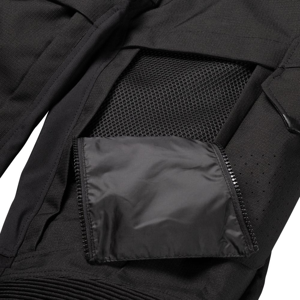 Celoroční Vrchní materiál Cordura s vysokou odolností proti oděru Střavý materiál na klíčových místech Richa ACS: velké ventilační panely ovládané zipy Odnímatelná nepromokavá membrána Aquashell pro LTD voděodolnost 10 000 mm Ochrana končetin L2 D3O, upgradovatelná na LVL 2 Elastická lýtka pro pohodlné nošení s botami nebo teniskami Harmonikový streč v oblasti kolen Velký zip pro snadné zapínání na nárt 4 velké vnější kapsy pro uložení vašich věcí Nastavitelný bederní popruh Reflexní prvky na klíčových místech 360° zip pro zapínání Materiál: vnější vrstva 100 polyester, podšívka 100% polyester, membrána 94% polyester a 6% spandex s PU povrchem