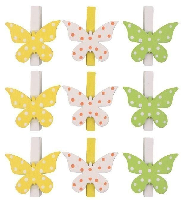 Motýlci dřevění na kolíčku 3 barvy 4,5 cm, 9ks v sáčku