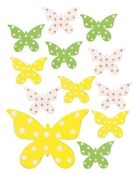 Motýlci dřevění s lepíkem 3 barvy 4 cm, 12 ks v sáčku