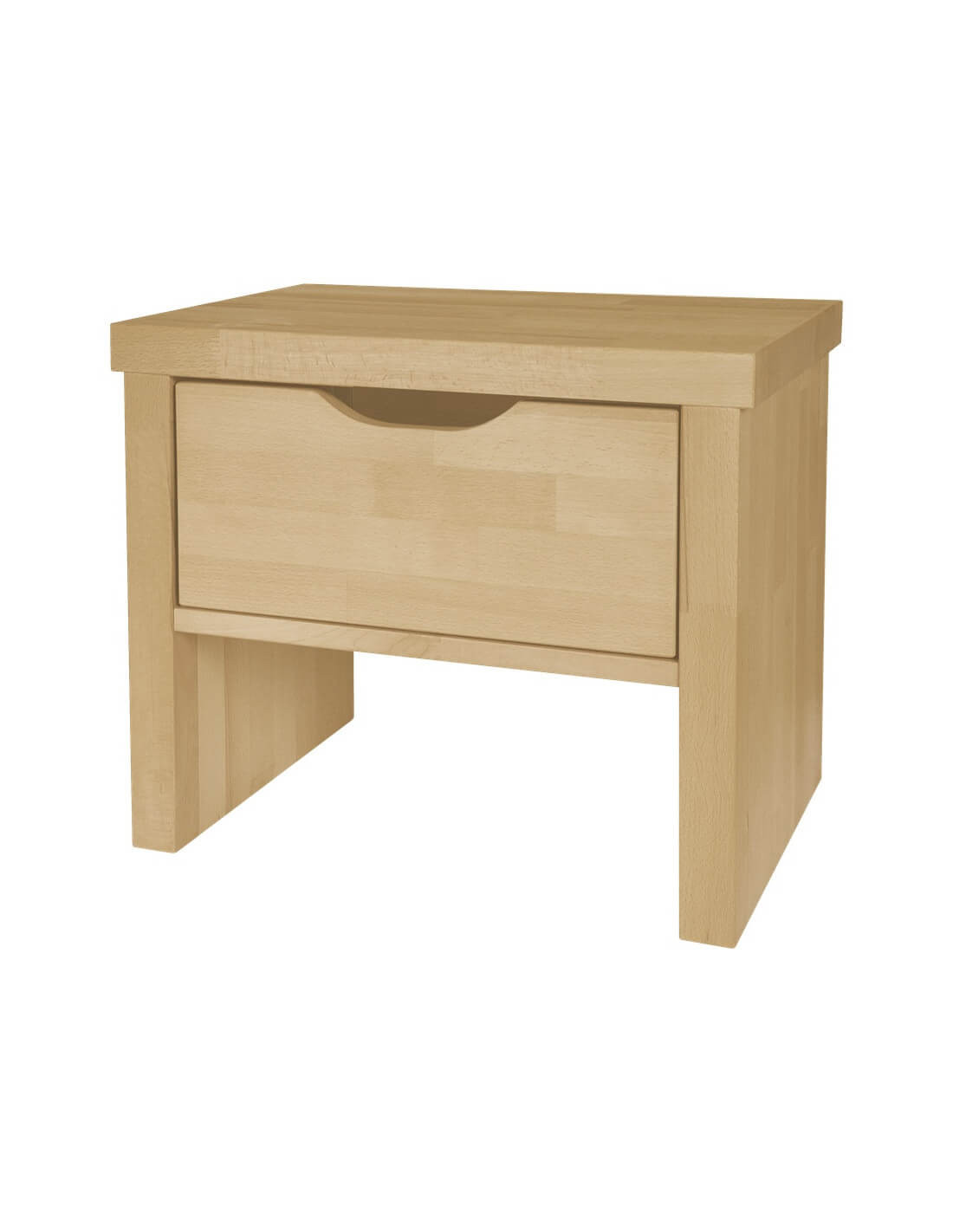 Vzhledově nadčasový noční stolek TNS 6 je vyráběn z kvalitního bukového masivu. Stolek je vyráběn v jednoduchém a praktickém provedení se zásuvkou pro odkládání různých drobností ve vrchní čísti. Zásuvka je opatřena kuličkovým výsuvem pro snadné otvírání. Noční stolek je samostatně stojící, hodí se tak k jakékoli jednolůžkové nebo manželské posteli z bukového masivu.