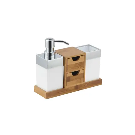 MSV KEA sada 3 ks koupelnových doplňků bílá / plast / bambus (3700703918936)