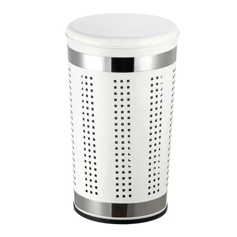 MSV koš na prádlo s polstrovaným víkem bílý / ocel / 46 L