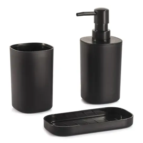 MSV LONA sada 3 ks koupelnových doplňků černá / plast