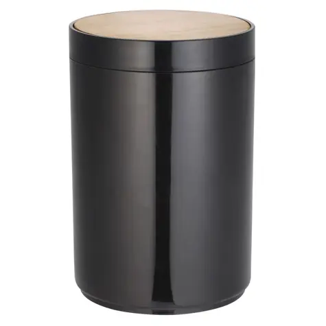 MSV OSLO výklopný odpadkový koš 5 L černý / plast / bambusové víko