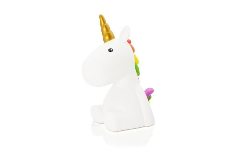 Zažene strach a navodí příjemnou atmosféru pro klidný dětský spánek. Magický jednorožec je krásný dárek pro každé dítko. Lampička mění postupně pět barev. Lze nastavit 15ti minutový časovač. V bílé barvě s duhovou hřívou. Dobíjecí baterie součástí - Lithium 5V - 600mA. Micro USB kabel součástí. 15ti minutový časovač. Klepnutím na noční světýlko změníte režim svícení. Výška 17cm, šířka cca 10 cm, hloubka cca 11,5 cm