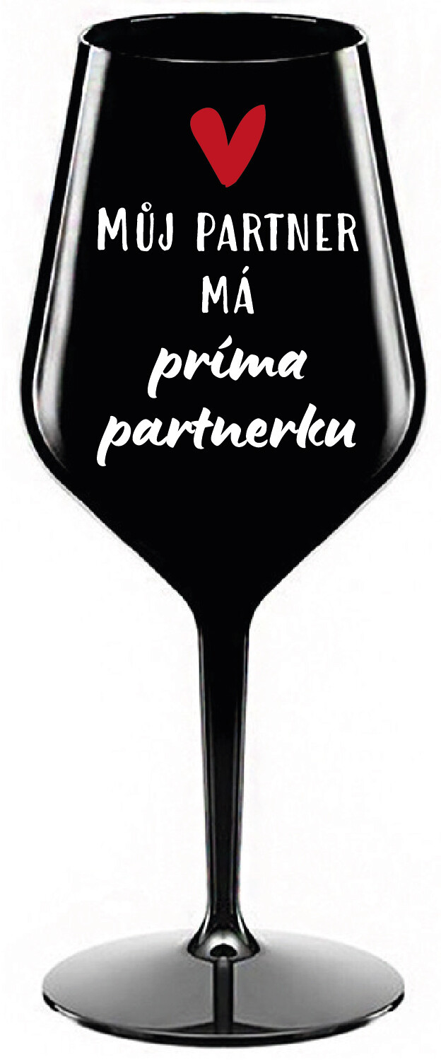 Nerozbitná černá vinná sklenice s motivem MŮJ PARTNER MÁ PRIMA PARTNERKU je skvělá na zahradu, pláž, výlet, piknik a parádu udělá i při kempování. Jelikož je vyrobená z kvalitního polykarbonátu je de facto nerozbitná. Je to luxusní kousek, s nímž si víno můžete vychutnat prostě kdekoliv. Mají ergonomický tvar, který příjemně padne do ruky a protože je lehká, usnadňuje to její přenášení. Je snadno skladovatelná a lehce se čistí. Díky svému designu si s ní můžete vychutnat doopravdy kdekoliv bezproblémové pití výborného vína. Materiál PP. Vyrobené s láskou v ČR