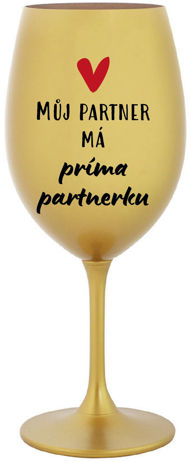 Vinná zlatá sklenice s originálním motivem MŮJ PARTNER MÁ PRIMA PARTNERKU je krásným a osobitým dárkem, které ale využijete i Vy sami třeba ve chvílích, kdy si budete chtít zpříjemnit náročný den. Tyto originální vinné sklenice jsou totiž nejen pro výjimečné události, ale i pro běžné večery, které si chcete zpříjemnit sklenkou dobrého vína. Jistě proto potěší každého milovníka vína, i toho, kdo si umí svůj život vychutnat plnými doušky. Materiál sklo. Vyrobené s láskou v ČR
