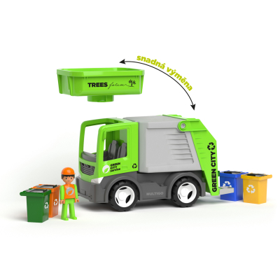 MultiGO funkční popelářský set s jedinečným stavebnicovým systémem výměny nástaveb a Igráčkem Popelářem. Rozvíjí jemnou motoriku. Pro děti od 3 let. Eco-friendly balení s FSC® certifikací, 100% recyklovatelný plast, nadstandardní životnost. Vyrobeno v ČR.