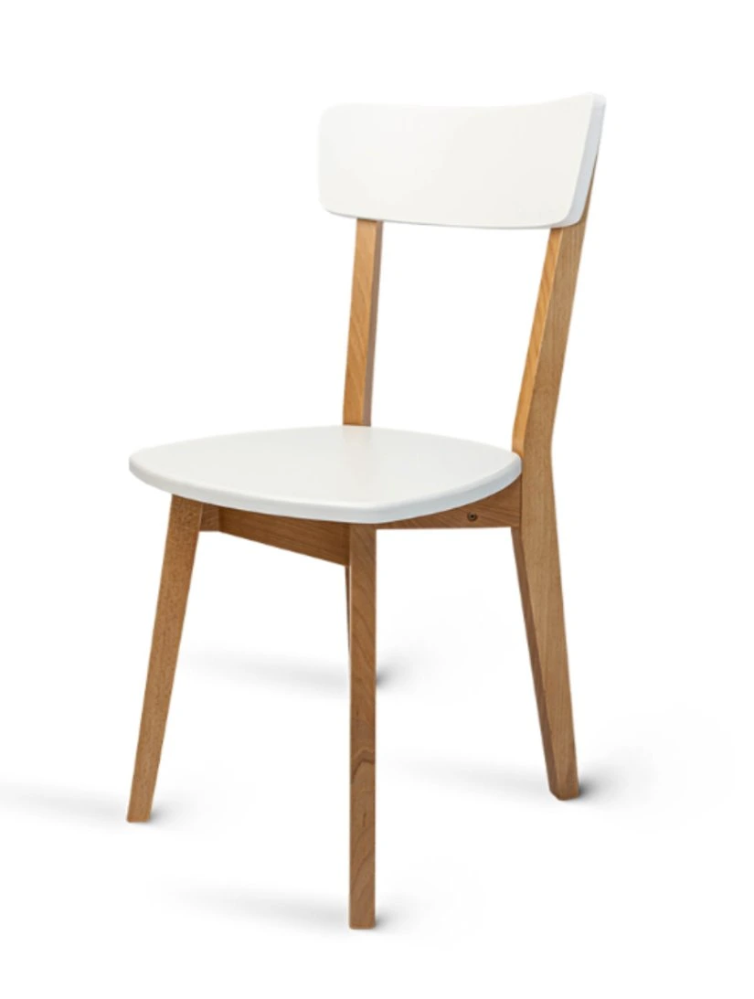 Jídelní židle TOR - buk přírodní/bílá je typem vzhledově velmi jemné a elegantní jídelní židle a to nejen díky bílé barvě sedáku a zádové opěrky, ale také samotné kostře židle, která se hodí do méně či více moderních interiérů. Materiálově je kostra židle vyrobena z kvalitního bukového masivu, přičemž sedák a zádová opěrka z ohýbané bukové překližky s bílým lakováním. Právě díky zaoblené zádové opěrce je sezení na židli velmi příjemné a to nejen pro malé a menší postavy, ale i pro ty vyšší a vysoké z nás. Jídelní židle se hodí nejen do menších nebo velmi prostorných kuchyňských koutů a obývacích pokojů, ale také do zátěžových provozů kaváren, restaurací, hotelů, apartmánů, ale také do zasedacích místností, sálů, atd..