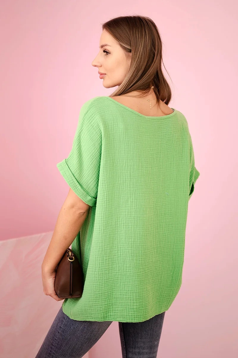 Mušelínová halenka s náhrdelníkem oliva UNI