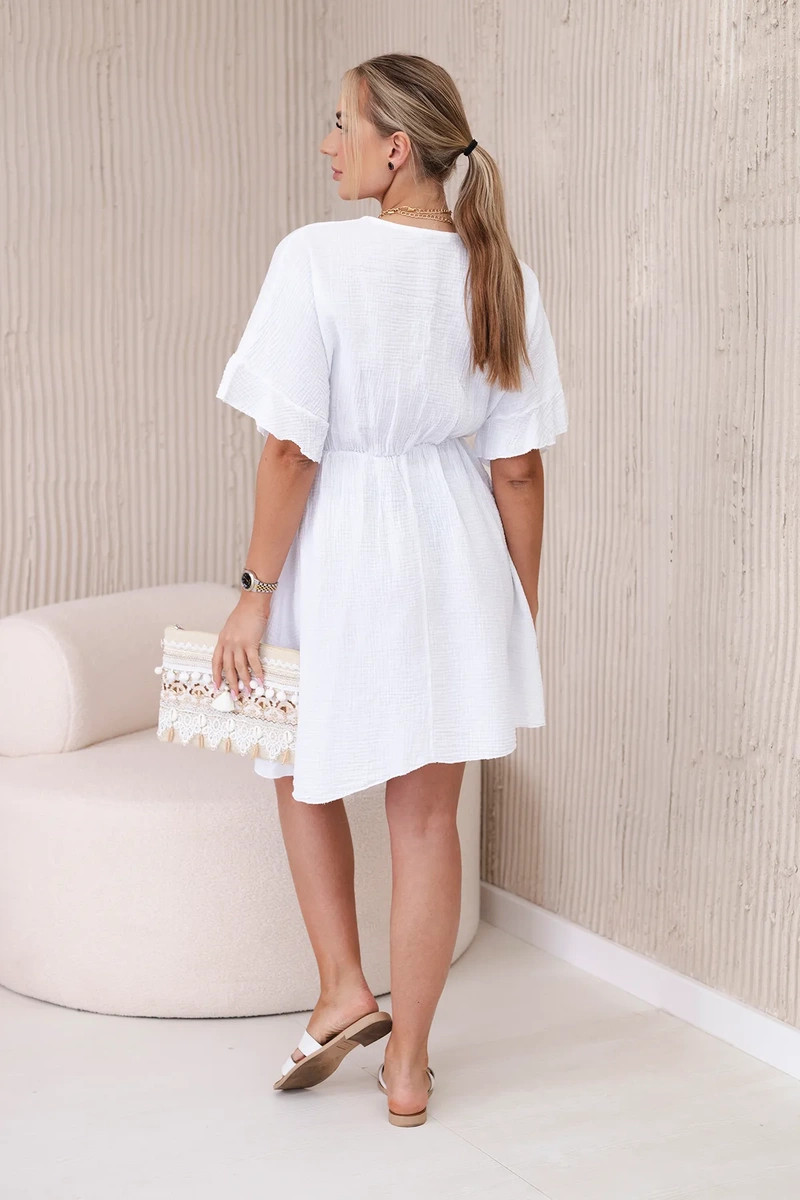 Domů Oblečení a móda Dámské oblečení Dámské šaty Mušelínové šaty s pasem bílý UNI