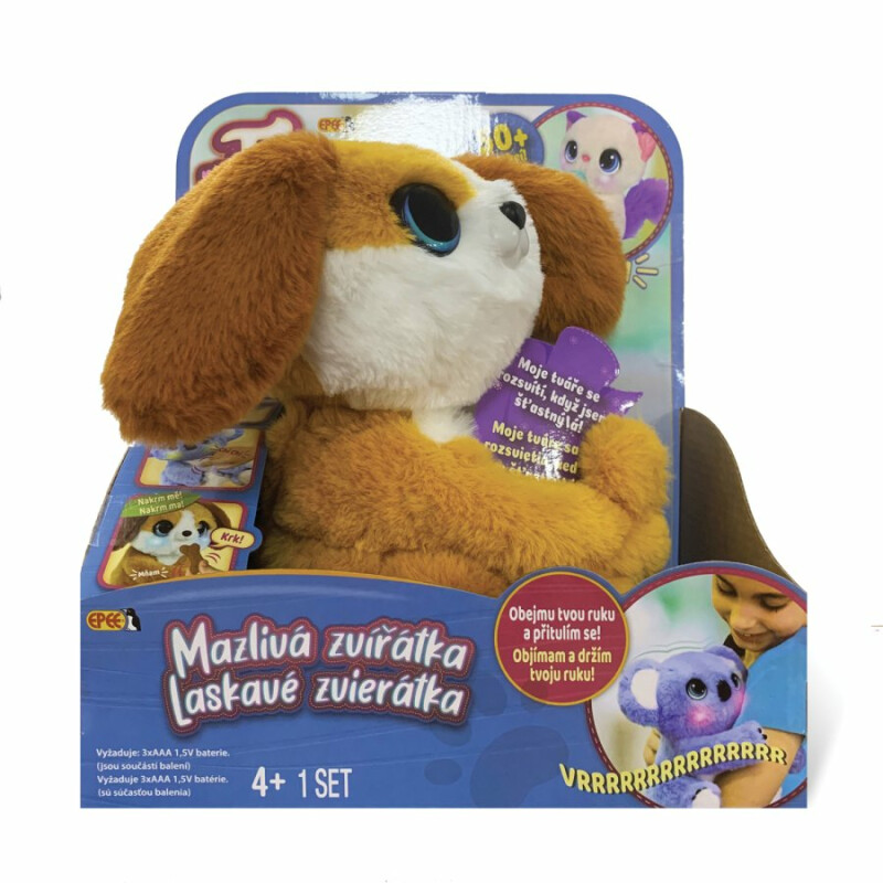 <p>Interaktivní plyšový pejsek Ferda z řady My Fuzzy Friends Mazlivá zvířátka reaguje na dotek a interakci více než 50 různými zvukovými a pohybovými reakcemi. Jeho plyšové tlapky mají speciální klouby, které je možné roztáhnout, pejsek pak sám obejme dětskou paži a přitulí se k ní. Pejska je možné hladit, lechtat, nakrmit, utřít mu nos nebo třeba uložit ke spánku. Svoje potřeby vyjádří rozsvícením tvářiček, jejichž barevností vyjadřuje pejsek některé své potřeby společně se specifickým zvukem. Výrobek vyžaduje 3× AAA baterie, jsou součástí balení. Pro děti od 4let.</p>