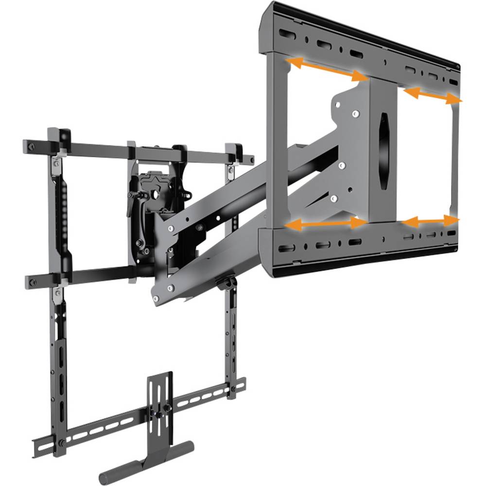 Plně pohyblivý nástěnný držák TV lze posouvat ze strany. Prožijte televizi v novém rozměru díky 4-násobnému nastavení. Obrazovku lze na držáku vodorovně přesouvat. Navíc jej lze naklánět dopředu a doz