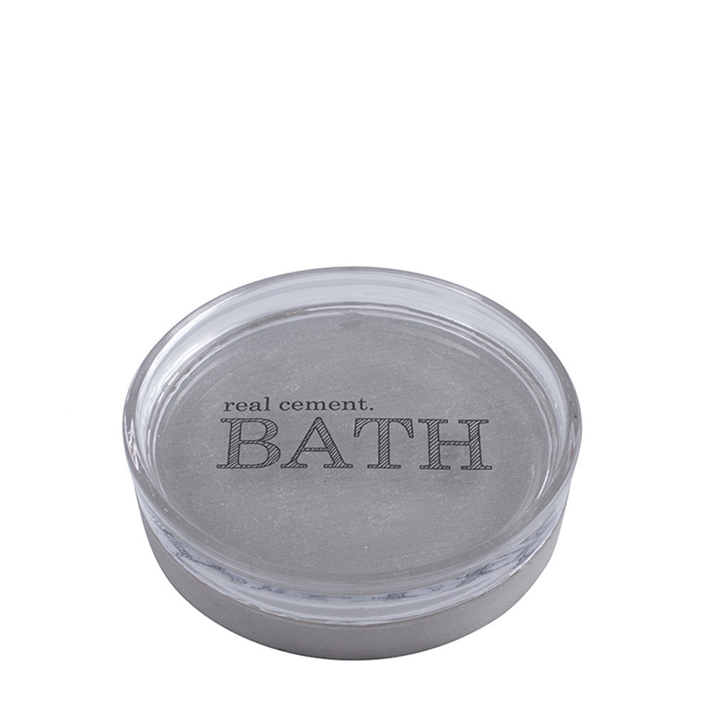 Miska na mýdlo s nápisem BATH, vyrobená z plastu.