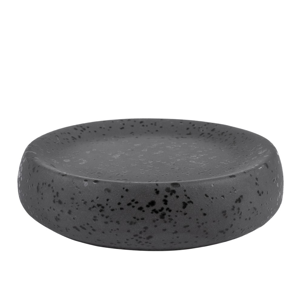 Kulatá miska na mýdlo ze série Hades. Je vyrobena z tmavé, matné antracitové kameniny. Má nepravidelné, skvrnité černé skvrny, které mu dodávají jedinečný charakter.