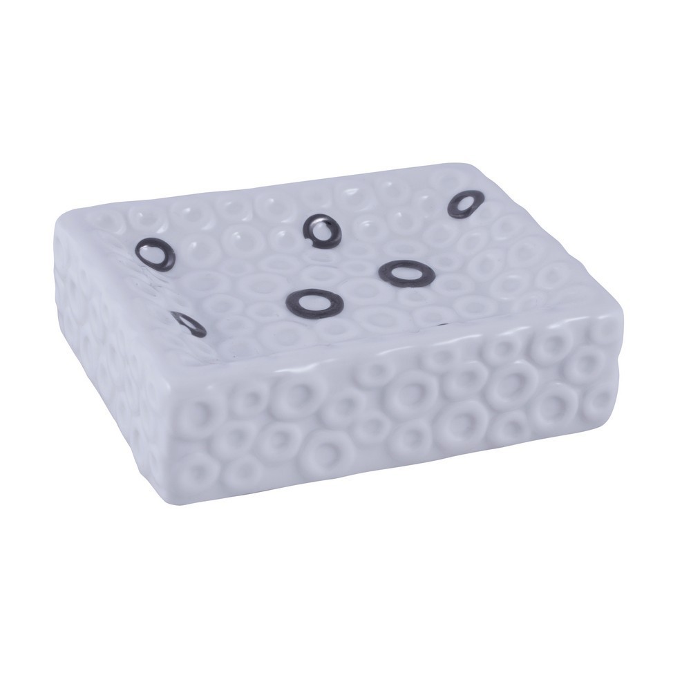RINGO miska na mýdlo. Jeho bílý plášť je zdoben kruhy.