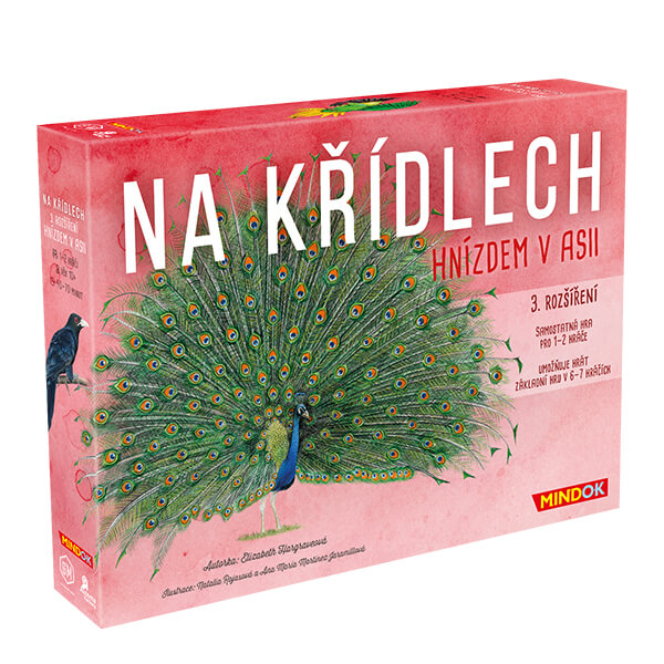Desková hra Na křídlech: Hnízdem v Asii je 3. rozšířením karetní hry Na křídlech (Wingspan). Kromě ptáků Severní Ameriky (základní hra Na křídlech), evropského ptactva (1. rozšíření Perutě Evropy) a opeřenců Austrálie (2. rozšíření Opeřená Oceánie) si nyní můžete zahrát i s australským ptactvem. Rozšíření kromě 90 nových karet ptactva a 14 nových karet úkolů přináší i novou variantu hry pro 1 - 2 hráče v režimu "duet" a také hru v počtu 6 - 7 hráčů v režimu "hejno". Obsahuje i nová vejce, žetony potravy, žetony úkolů, nové karty pro sólový režim a další. Karty z rozšíření Hnízdem v Asii můžete hrát samostatně (ke hře nezbytná základní hra Na křídlech) nebo je můžete promíchat s předchozími dvěma rozšířeními a hrát je všechny dohromady. Podívejte se, co všechno vám hra Na křídlech nabízí. Hra obsahuje česká pravidla. Pokud dáváte přednost zakoupení 3. rozšíření současně s velkou úložnou krabicí na hru Na křídlech a všechna její rozšíření, podívejte se na Hnízdící box. Hra Na křídlech: Hnízdem v Asii (3. rozšíření) obsahuje: 90 karet ptáků 14 karet úkolů oboustrannou desku úkolů oboustranný kotouč pořadí tahu 6 destiček úkolů pro režim DUET 30 označovacích žetonů (15 na hráče) 5 kostek potravy panel krmítka desku na karty ptáků 2 oboustranné voliéry 16 akčních kostiček (8 na hráče) 30 vajec 81 žetonů potravy oboustranná přehledová destička bodovací zápisník žeton začínajícícho hráče 2 listy "Rozlet ranního ptáčete" 18 karet pro sólový režim 3 brožury: pravidla hry, příloha a pravidla sólového režimu