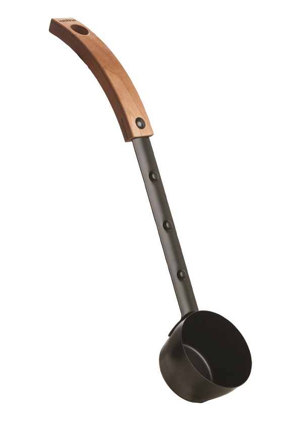 Materiálem naběračky je ocel v efektní černé barvě doplněná dřevěným madlem, díky kterému je manipulace s ní bezpečnější a příjemnější. Dřevěné madlo se v sauně nezahřívá.