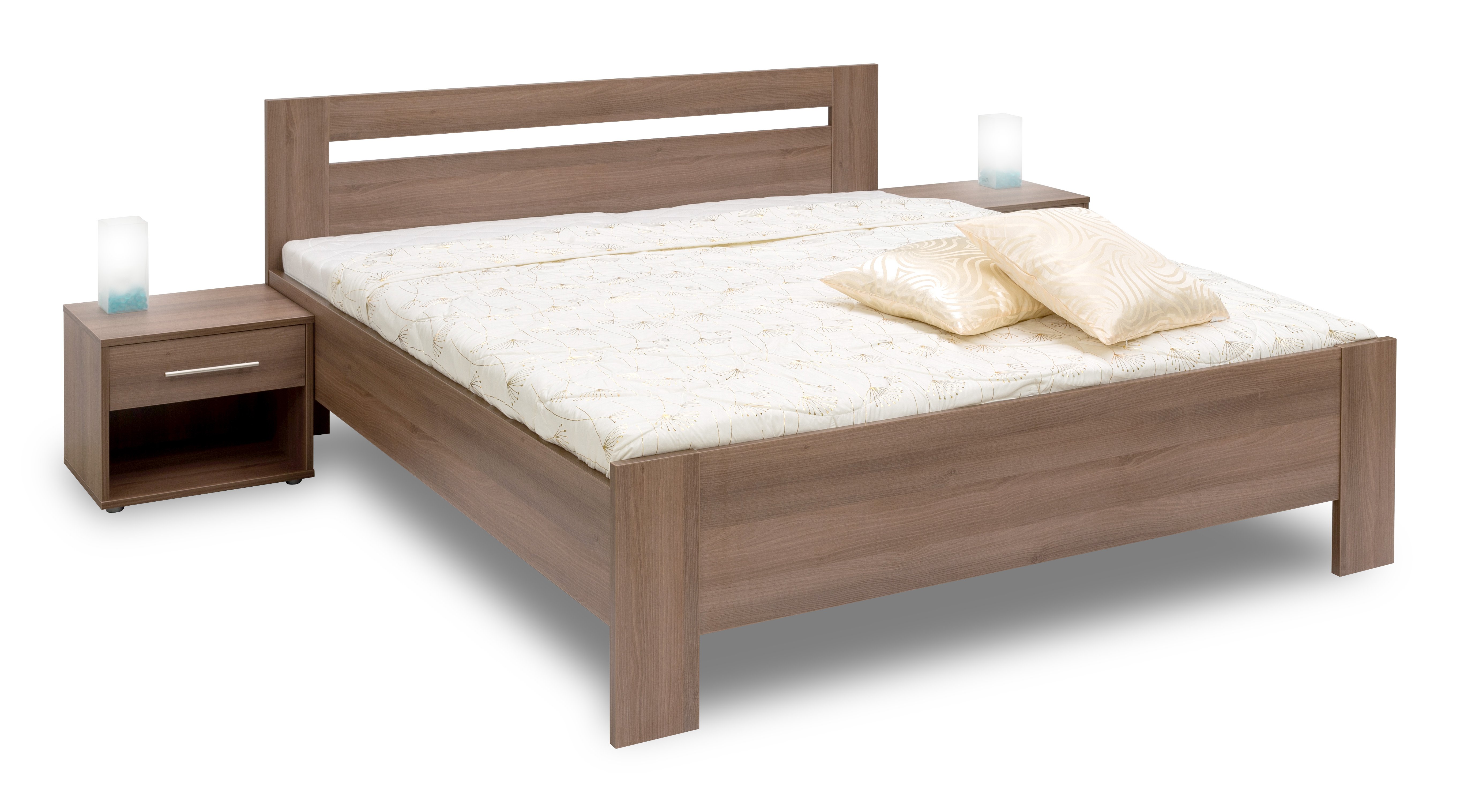 Rozměry postele: - postel (š x v x d): 146 / 166 / 186 x 90 x 207 cm - lůžko (š x d): 140 / 160 / 180 x 200 cm - výška bočnice: 50 cm - zvýšená lehací plocha: 50 - 65 cm (počítáno informativně včetně matrace výšky 16 cm).   Manželskou postel lze doplnit typově podobnými kousky nábytku z dílny stejného výrobce, kterými mohou být skříně, komody, ale i psací stoly a policové regály z naší nabídky.