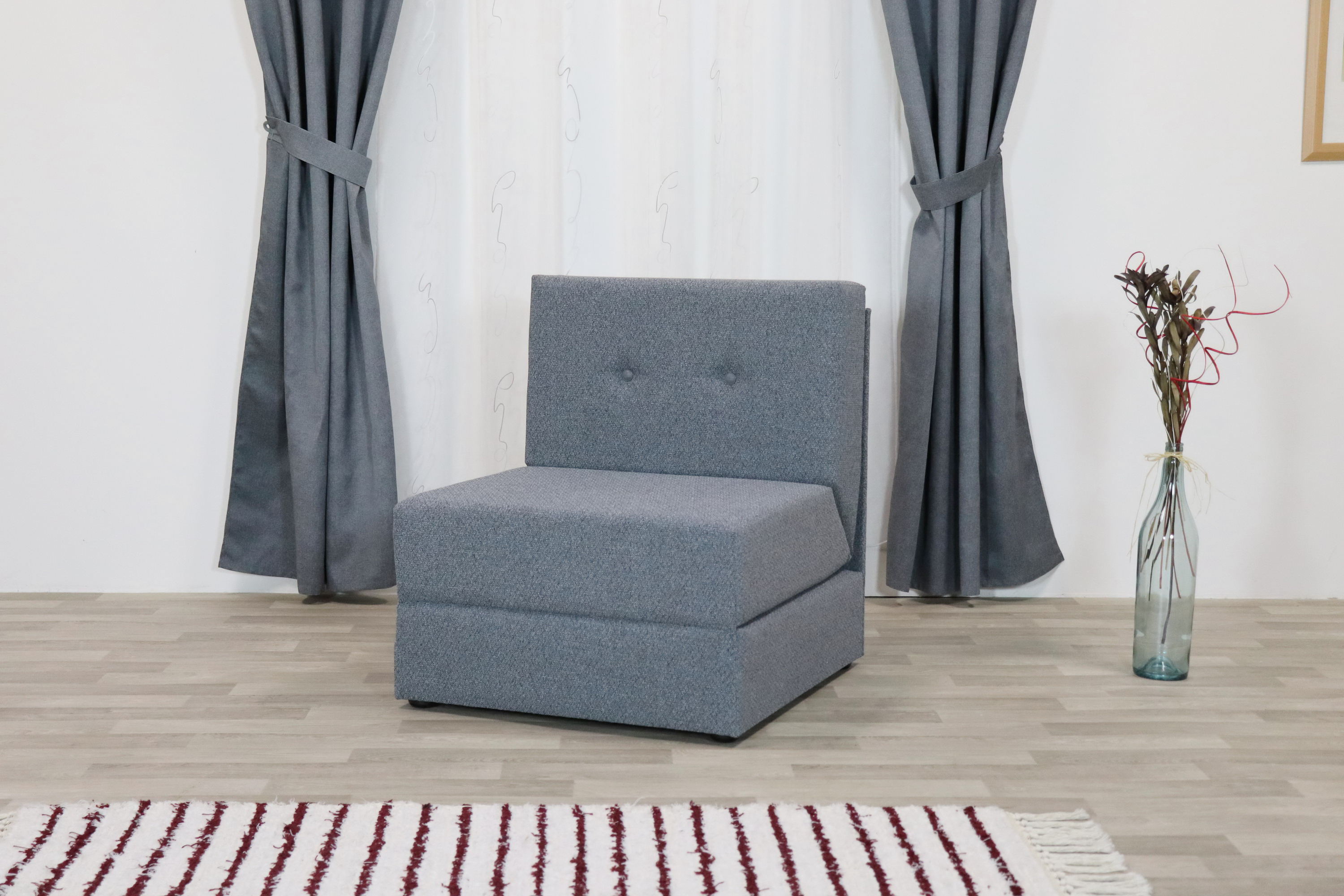 Celočalouněné rozkládací křeslo TEREZKA je praktické křeslo s jednoduchým polštářovým rozkládáním. Lehací plocha se vytvoří jednoduchým překlopením sedací a opěradlové matrace. Kostra křesla je tvořena z velkoplošných materiálů DTD. Matrace je vyrobena z kvalitní z PUR pěny. Křeslo je po rozložení vhodné pro příležitostné spaní a jako přistýlka do studentských a dětských pokojů, pokojů pro hosty, do hotelových pokojů a ubytoven, ale i na chaty a chalupy. Příležitostné přespání známého, či kamaráda našich dětí s tímto křeslem už nebude žádný problém :) Komfort rozkládacího křesla můžeme povýšit správně zvoleným topperem, který navíc zvýší ložnou plochu křesla.