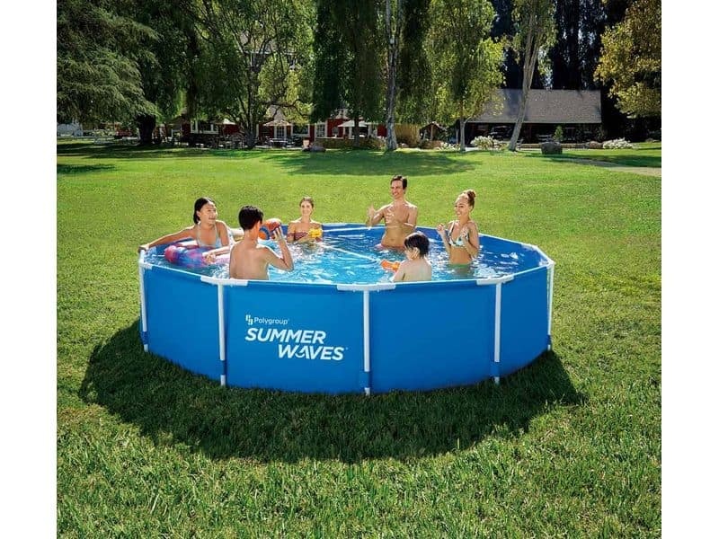 Kruhový nadzemní bazén s ocelovou konstrukcí. Průměr 3,66 m, výška 0,76 m. Třívrstvá bazénová fólie z PVC a polyesteru. Filtrace v balení. Za jak dlouho vám bazén přijde: Dodací lhůta u bazénů Summer Waves je 5–10 dní od vytvoření objednávky. Zakupte produkt Summer Waves Nadzemní bazén s filtrací – Active Frame (ø 3,66 × v. 0,76 m) z kategorie Bazény a doplňky za cenu 3950.35 Kč.
