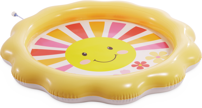 Nafukovací dětský bazén ve tvaru sluníčka. Po připojení k zahradní hadici vznikne díky otvorům po obvodu příjemná sprška. Vhodné pro děti od 2 let.