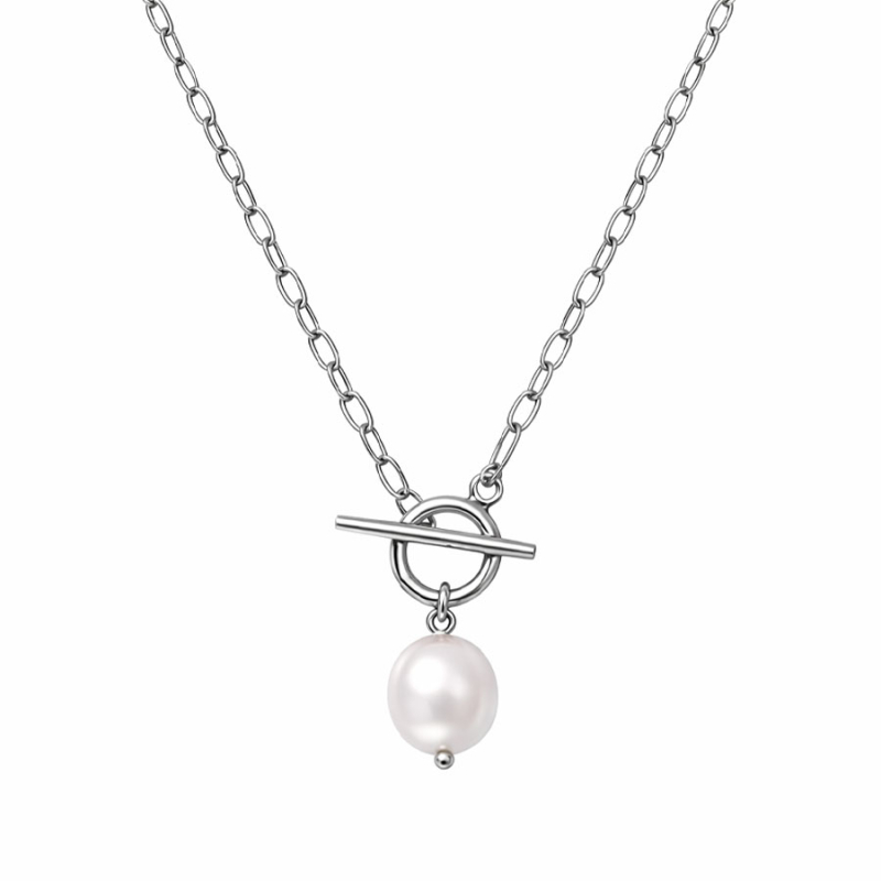 Moderní náhrdelník z chirurgické oceli zaujme svým výrazným a přitom elegantním designem. Dominantním prvkem je stylové toogle zapínání, které se stává nejen praktickým, ale i estetickým detailem. Pod ním je zavěšena barokní perla, jejíž nepravidelný tvar dodává šperku osobitost a jedinečný charakter.Každá perla je originál – její přirozený tvar a jemný lesk vytvářejí autentický a neopakovatelný vzhled. Kombinace chladného stříbrného tónu a organické struktury perly působí moderně, svěže a zároveň velmi elegantně. Chirurgická ocel zajišťuje vysokou odolnost, stálost barvy a komfort při nošení.Náhrdelník je ideální volbou pro ženy, které hledají výrazný, ale vkusný doplněk. Skvěle doplní minimalistický outfit i elegantní styl a díky svému designu se stane nepřehlédnutelným prvkem celkového vzhledu. 💡 Tip: Styl pro moderní ženy - toogle zapínání dodává šperku trendy vzhled. Ideální pro ženy, které sledují aktuální módní směry a hledají něco originálního.