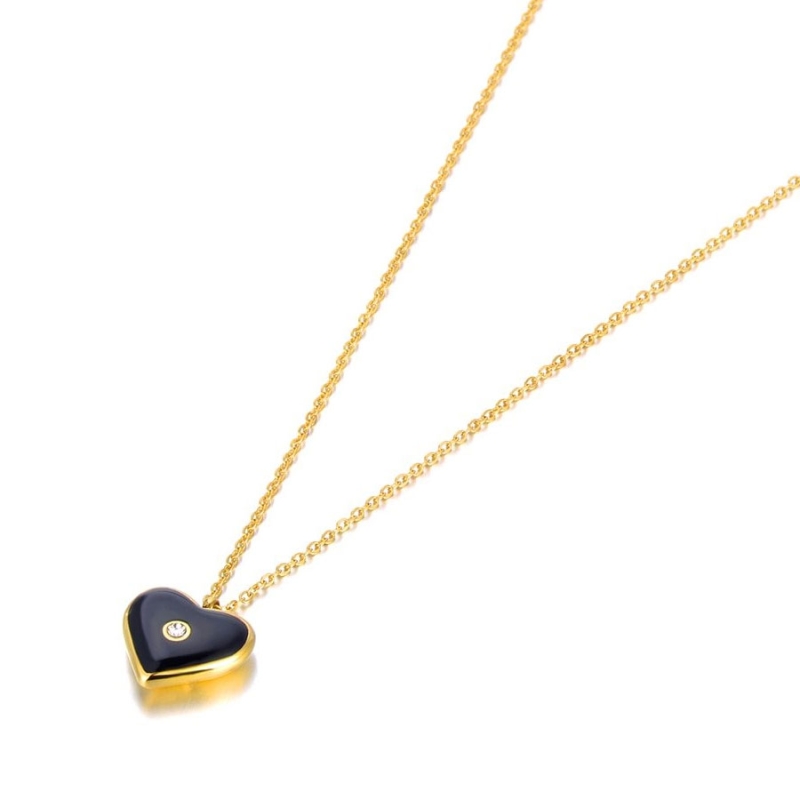 Elegantní pozlacený náhrdelník s černým srdcem a jemným zirkonem je symbolem moderního stylu a jemné elegance. Tento šperk okouzlí kontrastem mezi hlubokou černou a zářivou zlatou, což z něj činí nadčasový doplněk pro každou příležitost. Perfektní volba pro ženy, které hledají rafinovanost s dotekem originality. Náhrdelník přináší kombinaci minimalistického designu a výrazného dojmu. Lesk zlata a černý detail společně vytvářejí harmonii, která snadno doplní jakýkoliv outfit, ať už jde o každodenní městský styl nebo večerní eleganci. Jemný zirkon ve středu přívěsku dodává šperku luxusní šmrnc. Díky svému univerzálnímu designu se tento náhrdelník stane nenahraditelným kouskem ve šperkovnici. Jeho nadčasová estetika umožňuje snadnou kombinaci s dalšími doplňky i samostatné nošení, kdy dokonale podtrhne ženskou krásu. 💡Tip: Vytvořte působivý kontrast kombinací tohoto náhrdelníku s černými šaty nebo blůzkou, doplněnými pozlacenými náušnicemi nebo náramkem.