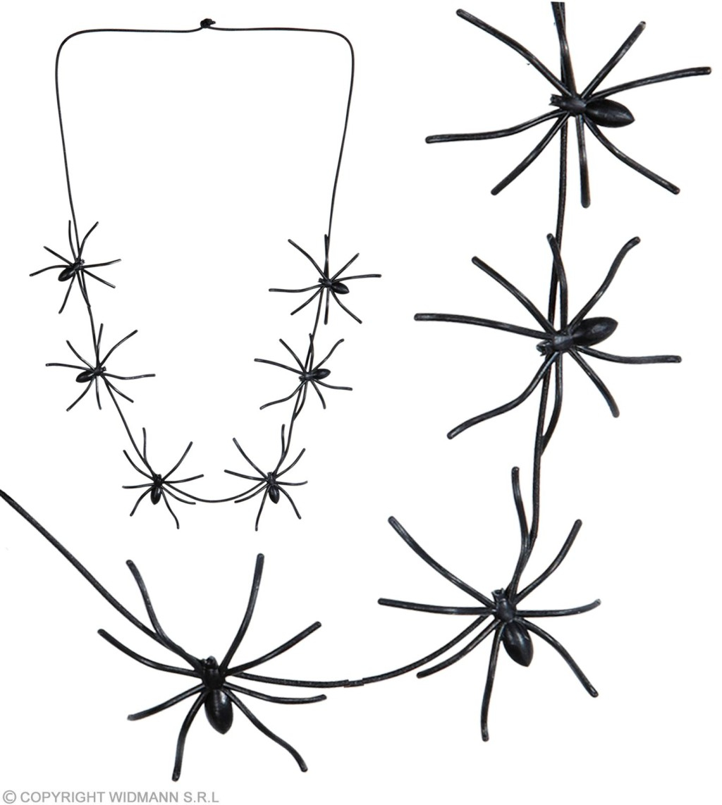 Černý náhrdelník s pavouky. Délka v obvodu 60 cm.