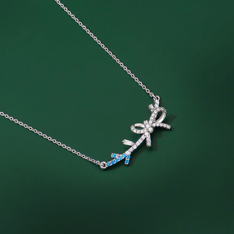 Tento elegantní náhrdelník zaujme svým jemným motivem větvičky ozdobené drobnou mašlí. Kombinace čirých a modrých zirkonů dodává šperku svěží lesk, který se krásně třpytí při každém pohybu. Tento sofistikovaný detail působí něžně, ale zároveň výrazně.Díky svému ladnému tvaru a decentnímu designu se náhrdelník snadno kombinuje s různými outfity – od večerních šatů až po elegantní halenky. Stříbrný odstín působí čistě a moderně, zatímco modré kamínky přinášejí jemný barevný akcent. Tento šperk působí mladistvě, romanticky a zároveň elegantně.Náhrdelník s větvičkou a mašlí je ideální pro ženy, které milují detaily a chtějí podtrhnout svou jemnost i styl. Hodí se jako dárek k narozeninám, svátku či jiné výjimečné příležitosti. Díky kvalitnímu zpracování se stává krásným doplňkem pro každý den. 💡Tip: Zkombinujte náhrdelník s náušnicemi ve stejném duchu – například s jemnými zirkonovými lístky nebo minimalistickými motivy – a vytvořte sladěný look pro speciální večery i běžné nošení.