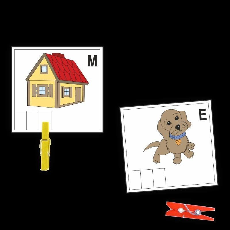 Žák analyzuje slovo. Pomocí kolíčku (v balení 2 kusy) označí písmeno ve slově. Otočením kartičky zkontroluje. Využití na analýzu hlásek ve slově a zapsání celého slova.
