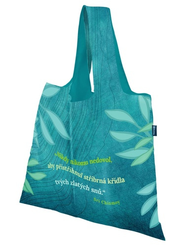 Ekologická a designová taška s aforismem je praktická a dostatečně veliká i na větší nákupy. Sbalíte do malé ruličky a máte v kabelce, kdykoli je zapotřebí. Má i vnitřní kapsu, do které můžete dát klíče, peněženku nebo telefon. Krásné pouzdro na zip z ní dělá také výborný dárek, který bude přinášet inspiraci při každém použití. Vyrobená z recyklovaných PET lahví, rozměry 50x42cm, nosnost až 20kg.