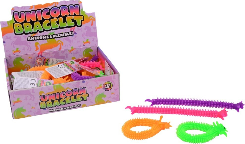 Náramek natahovací Jednorožec. Můžes si s ním hrát, natahovat. Lze zkrátit dle potřeby v 5 barvách – růžový, modrý,zelený, fialový a oranžový.