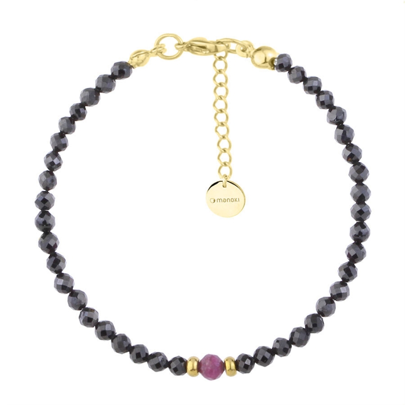 Tento náramek je dokonalým spojením luxusu a přírodní elegance, který překračuje hranice obyčejného šperku. V centru pozornosti stojí černé turmalíny, symbolizující ochranu a pozitivní energii, jemně doplněné o vzácný růžový rubín. Tento jedinečný kámen přidává náramku dotek lásky a vášně, zatímco zlaté prvky podtrhují jeho sofistikovanost. Černé turmalíny jsou známy pro své schopnosti odrážet negativní energii a zvýrazňují odvahu a sílu nositele. V kombinaci s růžovým rubínem, který je často spojován s královskou důstojností a noblesou, vytváří tento náramek nejen módní statement, ale i osobní amulet. S délkou, která je nastavitelná díky prodlouženému řetízku, poskytuje tento náramek univerzálnost a pohodlí při nošení. Je to ideální doplněk pro ženu, která hledá spojení módního výrazu a osobního vyznání, a je vhodný pro každodenní nošení i speciální příležitosti. Tento náramek není pouhý šperk, je to symbol osobní síly a elegance.