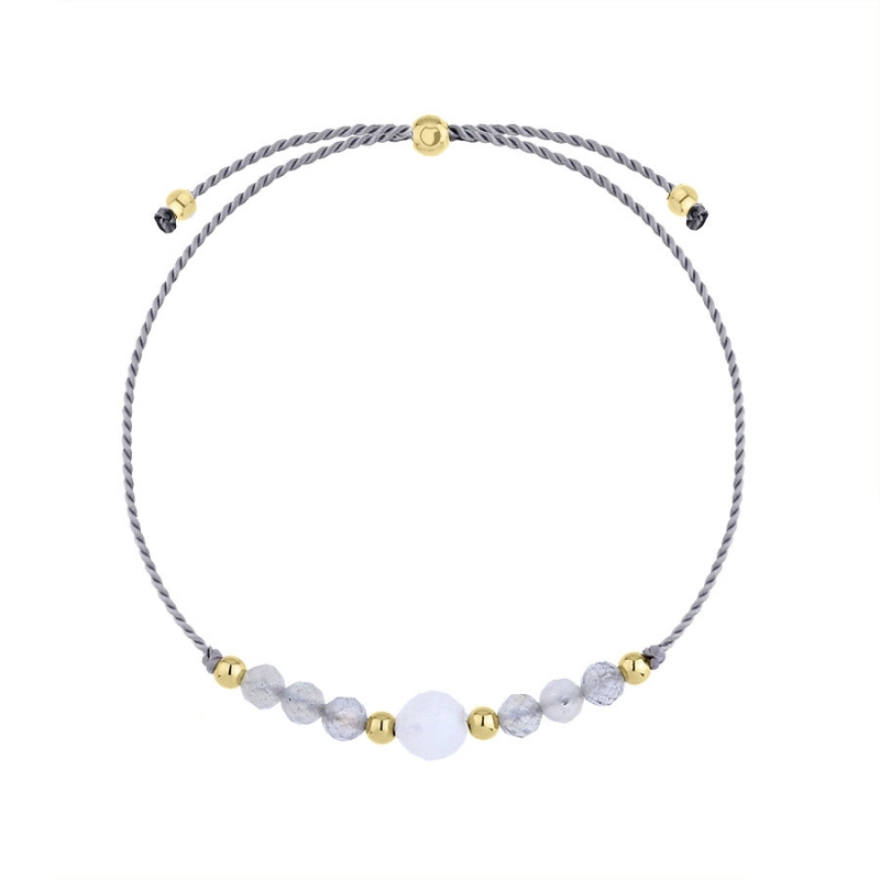 Náramek inspirovaný znamením zvěrokruhu Rak je elegantní šperk z přírodních kamenů labradoritu a měsíčního kamene, navlečených na nastavitelné šedé šňůrce. Tento jedinečný náramek je navržen tak, aby rezonoval s citlivou a hluboce emocionální povahou Raka a posílil jeho přirozené vlastnosti. Labradorit, známý jako kámen transformace a ochrany, posiluje intuici a pomáhá Rakům objevit jejich vnitřní sílu. Jeho mystická energie podporuje sebepoznání a duchovní růst, což dokonale ladí s přirozenou empatií a citlivostí tohoto znamení. Měsíční kámen, symbol emocí a ženskosti, dodává Rakům harmonii a pomáhá vyrovnávat jejich proměnlivé nálady, čímž přispívá k nalezení vnitřního klidu. Tento nastavitelný náramek je více než jen módním doplňkem; je to mocný talisman, který posiluje duchovní a emocionální rovnováhu. Ideální jako osobní amulet nebo jako speciální dárek pro někoho ve znamení Raka. Přidejte do svého života energii těchto výjimečných kamenů a podtrhněte svou jedinečnou osobnost.