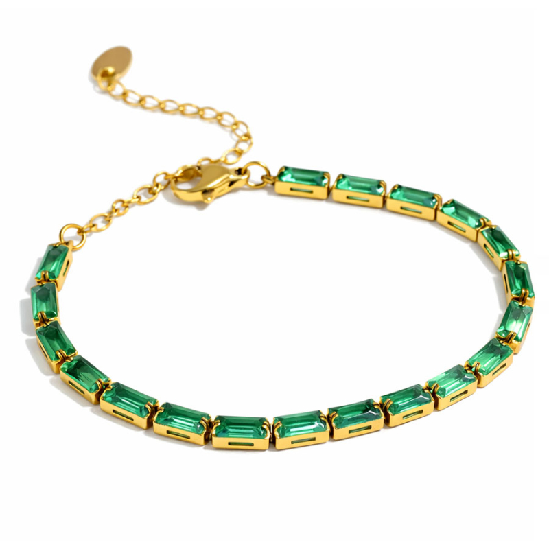 Tento pozlacený tennis náramek z chirurgické oceli přináší osvěžující spojení elegantní linie a výrazné zelené barvy, která na zápěstí působí luxusně, svěže a velmi osobitě. Obdélníkově broušené kameny vytvářejí pravidelný rytmus světla a barvy, díky němuž šperk zaujme na první pohled, ale stále si zachovává kultivovaný a vytříbený charakter. Zlatý tón kovu navíc zelené kameny krásně prohřívá a dodává jim ještě slavnostnější výraz.Na tomto náramku je působivé právě to, že spojuje klasickou eleganci tennis šperků s neotřelým barevným akcentem. Nepůsobí okázale, přesto má dostatek výraznosti, aby se stal hlavním detailem celého outfitu. Je vhodný pro ženy, které milují jemný luxus, ale zároveň hledají něco zajímavějšího než čistě čiré kameny. Výsledný dojem je sofistikovaný, ženský a současně moderní.Díky své štíhlé linii a promyšlenému provedení se náramek velmi dobře nosí a krásně vynikne samostatně. Je to šperk, který dodá zápěstí světlo, barvu i eleganci bez zbytečné těžkosti. Hodí se ke slavnostním příležitostem, večerním outfitům i k dennímu stylu, pokud chcete i jednoduchému oblečení dodat špetku noblesy a osobitého kouzla. 💡 Tip: Pokud chcete působit elegantně a současně neotřele, noste jej samostatně jako dominantní detail zápěstí. Díky barvě kamenů nepotřebuje složité kombinování a sám o sobě vytvoří velmi stylový efekt.