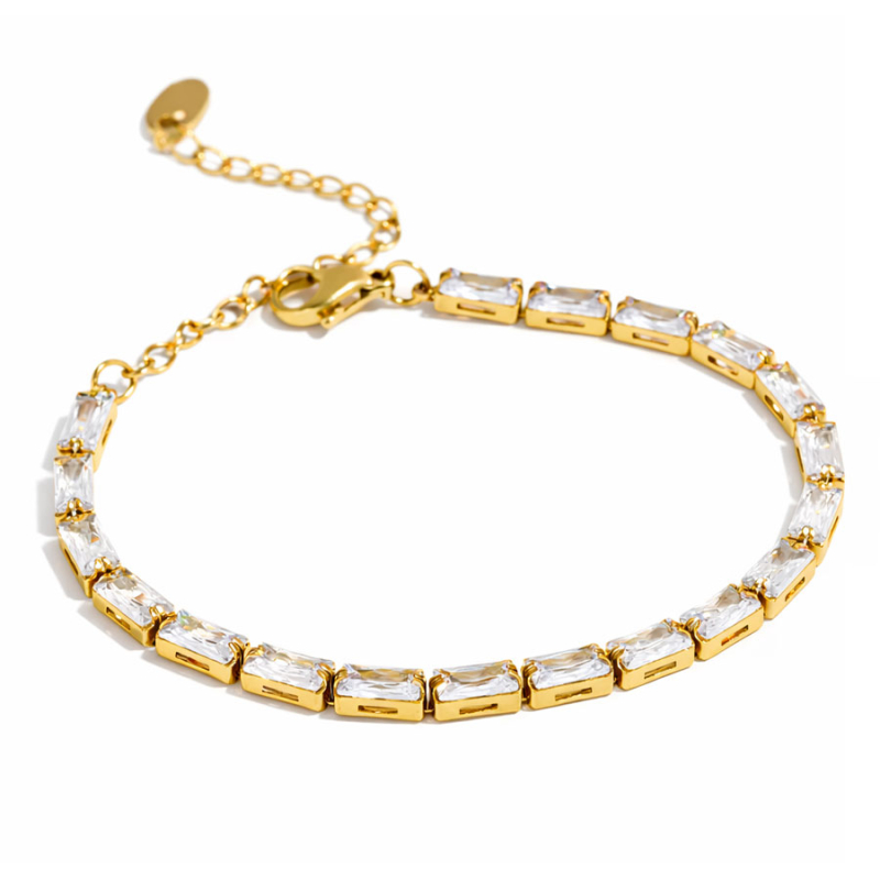 Tento tennis náramek z chirurgické oceli v pozlaceném provedení zaujme na první pohled svou čistou linií a precizně uspořádanými zirkony v obdélníkovém brusu. Působí elegantně, světelně a velmi kultivovaně. Každý detail je sladěn tak, aby na zápěstí vytvořil jemný, ale nepřehlédnutelný efekt, který dodá celému outfitu nádech vytříbeného vkusu.Na rozdíl od výrazných šperků, které si žádají pozornost samy o sobě, tento náramek okouzlí spíše svou decentní noblesou. Pozlacený tón mu propůjčuje hřejivost a ženskost, zatímco pravidelně zasazené čiré kameny přinášejí jas a slavnostní lesk. Výsledkem je šperk, který se krásně hodí jak ke každodenní eleganci, tak k večernímu stylingu nebo výjimečným příležitostem.Tennis náramek patří mezi doplňky, které nepodléhají rychlým trendům. Jeho síla spočívá v nadčasovém vzhledu, lehkosti a schopnosti rozzářit zápěstí bez zbytečné okázalosti. Tento model ocení ženy, které hledají jemný luxus, univerzální nositelnost a šperk, který působí elegantně dnes i za několik let. 💡 Tip: Jako dárek potěší ženu, která miluje klasickou eleganci a čisté linie. Je to krásná volba k narozeninám, výročí, svátku nebo jako vkusné překvapení, které nepůsobí okázale, ale zanechá dojem.