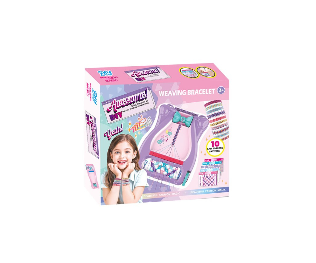 Náramky přátelství - hrací set - je tvořivá sada určená dětem od tří let, která umožňuje vyrábět originální náramky pomocí jednoduchých technik vázání. V balení najdete praktický růžový přístroj s mašličkou, který usnadňuje výrobu náramků a pomáhá udržet nitě napnuté během práce. Tento přístroj má ergonomický tvar a je vyroben z lehkého plastu, díky čemuž je manipulace pohodlná i pro malé ruce. Součástí sady je deset barevných šablon s různými vzory, které dětem ukazují, jak mohou vytvořit různé designy. Šablony jsou barevné a přehledné, což usnadňuje jejich používání. Kromě nich obsahuje balení také několik barevných bavlněných nití v odstínech žluté, růžové, modré, fialové a červené, které poskytují dostatek materiálu pro tvorbu více náramků. Nitě jsou kvalitní a příjemné na omak, což zajišťuje pohodlnou práci a pěkný vzhled hotových výrobků. Dále jsou v balení dekorativní prvky, jako jsou plastové korálky různých tvarů a barev, včetně květinek a průhledných či perleťových kuliček, které lze do náramků zaplést a přidat jim tak osobitý styl. Součástí sady je také podrobný barevný návod, který krok za krokem vysvětluje čtyři různé techniky vázání náramků. Tento hrací set tak rozvíjí kreativitu a jemnou motoriku dítěte a zároveň podporuje trpělivost a soustředění. Celá sada je zabalená v kompaktní krabičce s obrázkem spokojené dívky a ukázkami hotových náramků, což usnadňuje přehled o obsahu a inspiruje k vlastní tvorbě. Díky této sadě mohou děti tvořit jedinečné náramky nejen pro sebe, ale i jako dárky pro své kamarády, čímž se posilují přátelské vztahy a radost z tvůrčí činnosti.