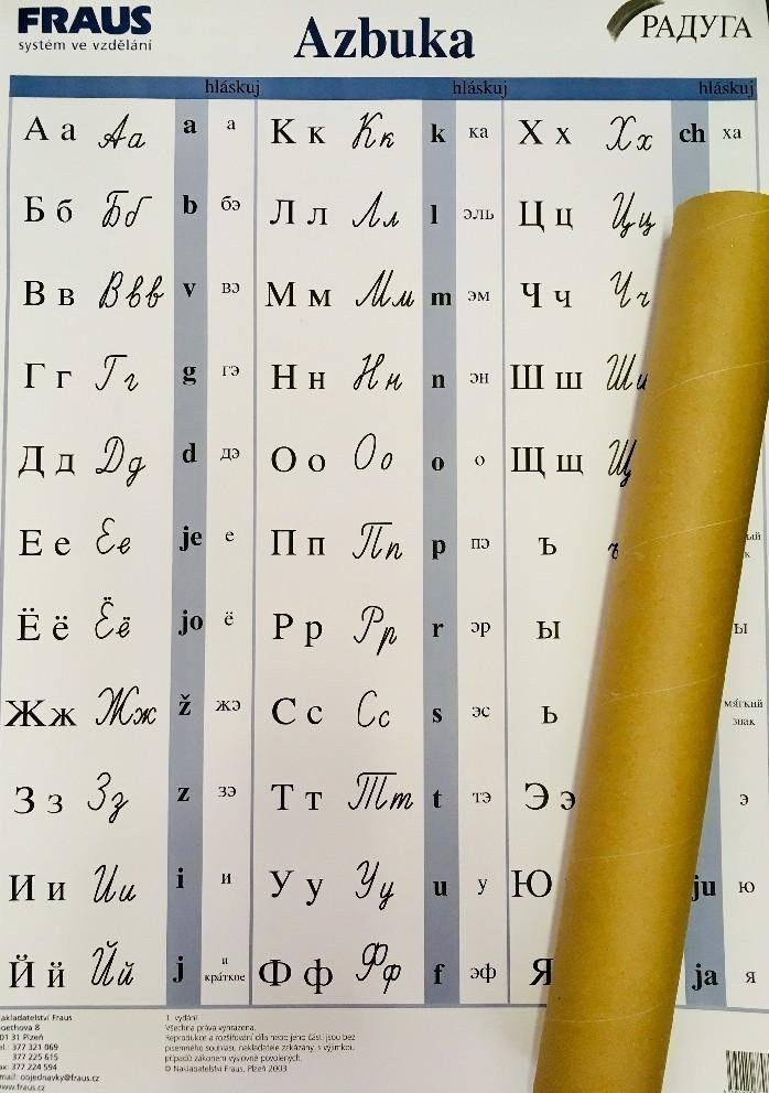 Doplňkový materiál pro výuku ruského jazyka. Slouží k naučení a procvičování ruské abecedy - azbuky. Vhodné pro výzdobu učebny nebo třídy.