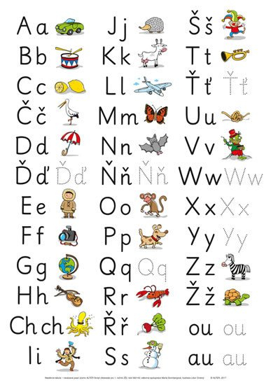 Tabule nevázaného psacího písma. Přináší písmena v pořadí české abecedy.1 barevná tabule