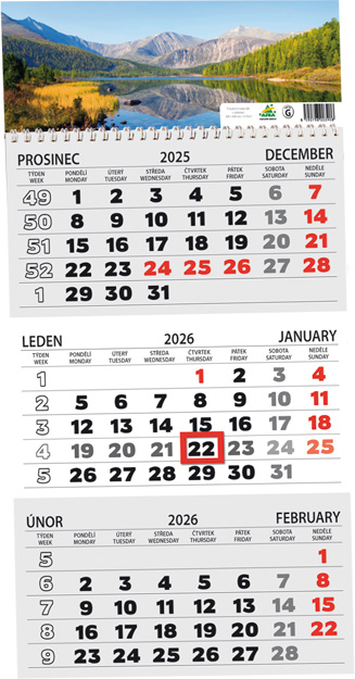 Nástěnný tříměsíční kalendář na rok 2026. české tříměsíční kalendárium rozměr: 300 x 426 mm Zakupte produkt Nástěnný kalendář ARIA 2026 - Tříměsíční z kategorie Kalendáře, diáře | Nástěnné kalendáře 2026 | Tříměsíční a jednolisté nástěnné kalendáře 2026 od výrobce Aria-Cards za cenu 69 Kč.