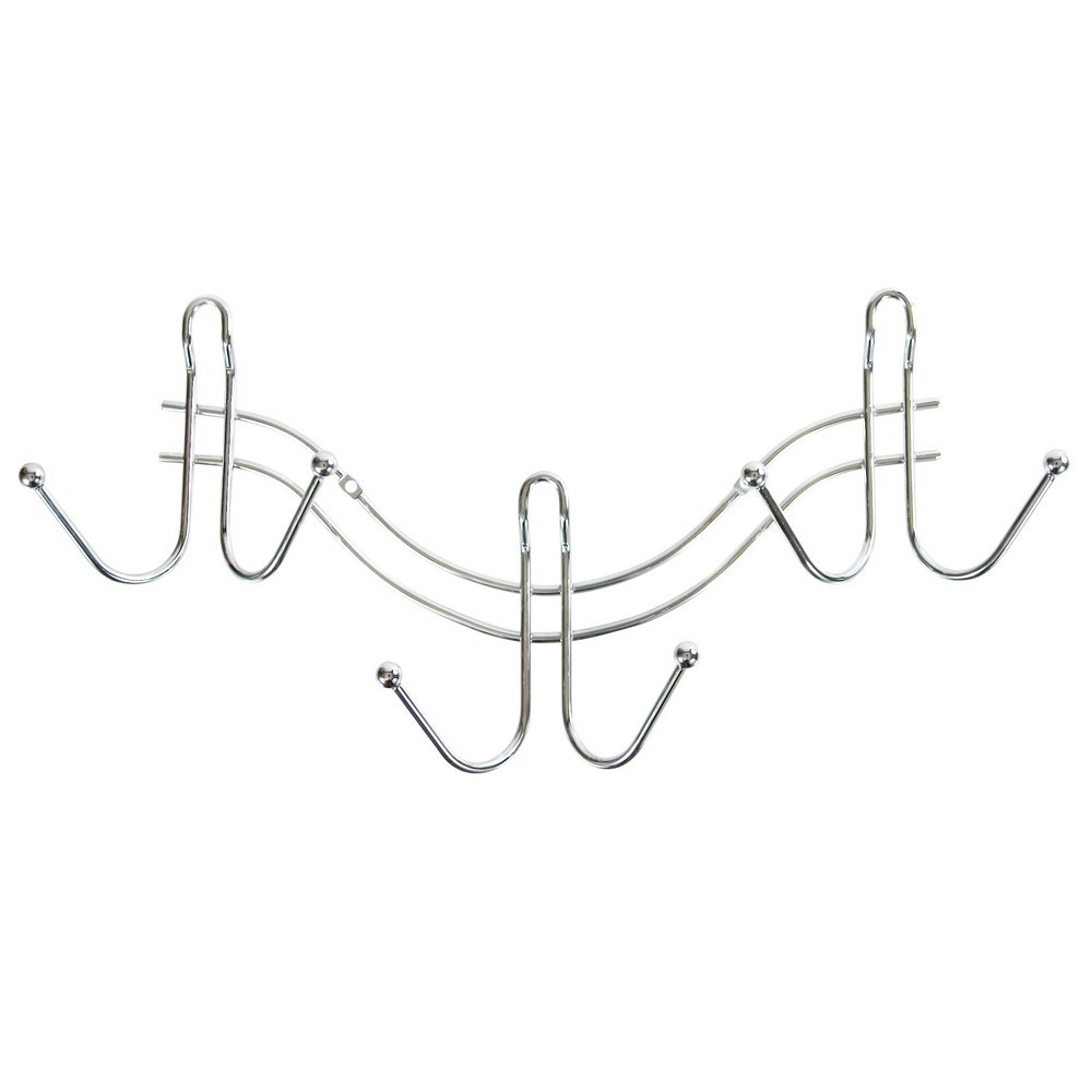 Popis: Materiál: drát chromovaný Rozměry produktu: 42,5 cm x 18 cm x 3,5 cm Čistá hmotnost: 0,3 kg Drátěný koupelnový věšák vyrobený z lesklého chromového drátu. Jeho montáž je pomocí šroubů a hmoždinek, které jsou součástí balení. Nástěnný věšák má až 6 háčků na zavěšení ručníků, županů nebo oblečení.
