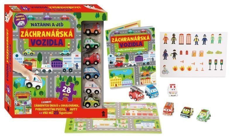 <p>S tímto záchranářským setem si užiješ hodiny a hodiny zábavy! Pozor! Právě začíná velká záchranářská akce! Nejprve si z puzzle centra města postav velkou herní plochu (42 × 61 cm). A teď už stačí jen připravit si šest záchranářských autíček a akce může být zahájena. Natáhni a pusť – a pak už jen sleduj, kam až záchranáři dojedou! Do města můžeš také přidat více než 25 postav a předmětů, například semafory a požární hydranty. Záchranná akce úspěšně splněna? V tom případě je tedy ten správný čas otevřít knížku a pustit se do 32 stran zábavných úkolů, omalovánek a aktivit o záchranářích! Pro děti od 3 let.</p>